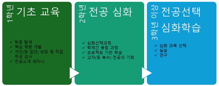 - 학생들이 전공을 선택한 후, 해당 전공의 심화 과목과 실습, 연구 기회를 제공합니다.