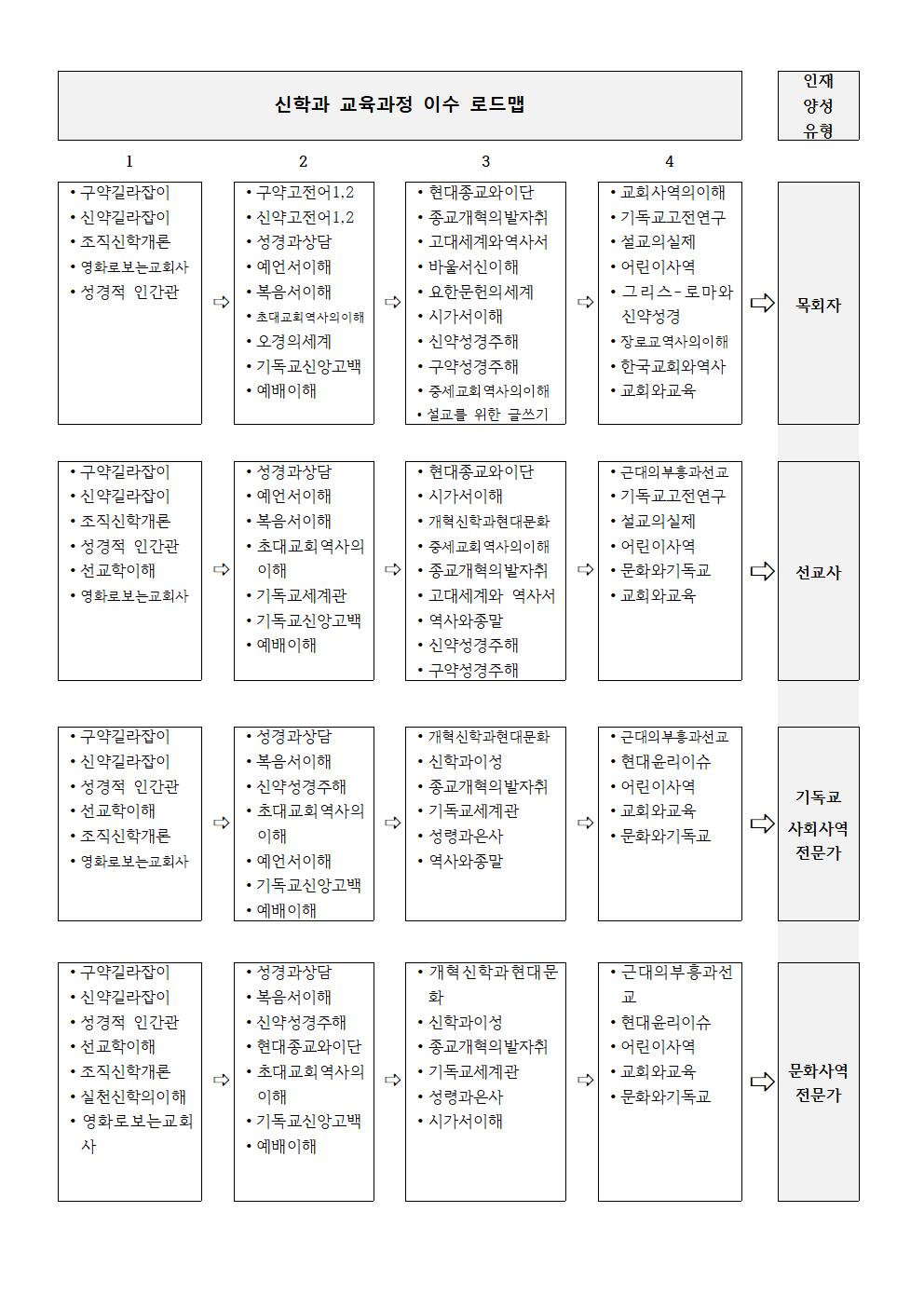 - 기관 목회자: 교목, 원목, 군목(재학 중 군종 지원 가능)