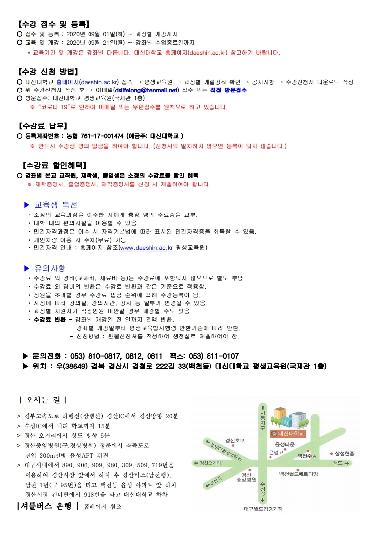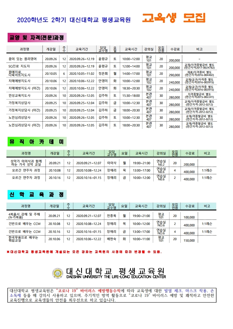 | 2020학년도 2학기(9월) 수강생 모집안내 | |||||||||