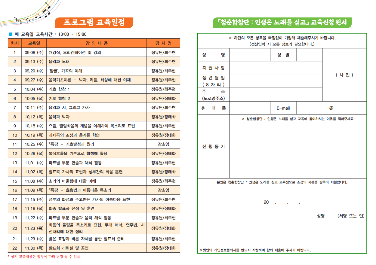 2023 경상시 시민 상생 캠퍼스 '청춘합창단_인생은 노래를 싣고' 교육생 모집을 실시 합니다.