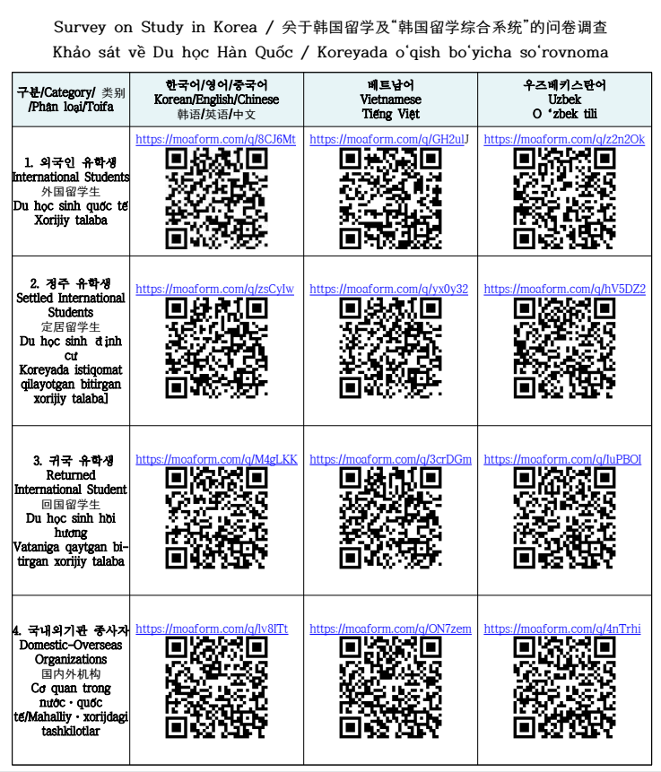 - 한국에서 학업을 마치고 본국으로 귀국한 외국인 학생 → 5. 귀국 유학생 설문지