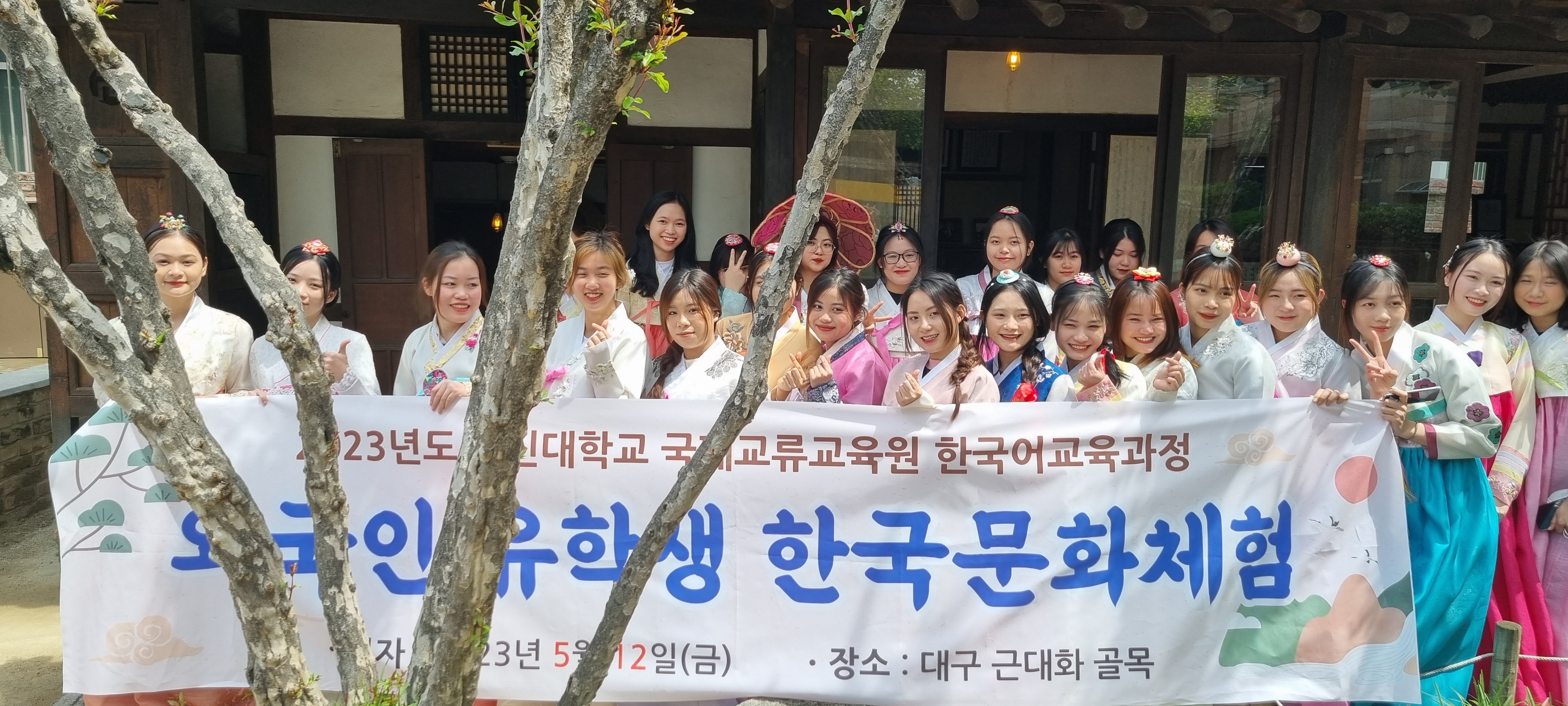 2023년 5월 12일(금) 대신대학교 한국어교육과정에 재학중인 외국인 유학생 60여명을 대상으로 한국문화 체험활동을 실시하였다. 이상화 고택관람, 대구 근대골목투어 및 전통 한복체험 ,제기차기등 전통놀이 활동으로 한국 문화와 역사를 배우며 유익한 시간을 가졌다.