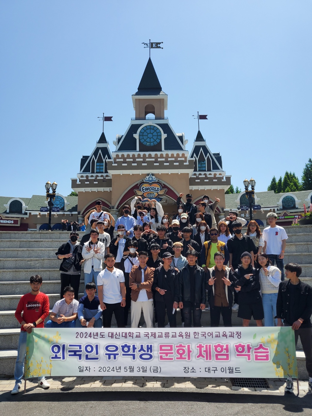 2024년 5월 3일 (금) 대신대학교 한국어학당 연수생 50여명이 대구 이월드를 방문하여 학생들간의 친밀감을 증진하고 화합을 도모하는 시간을 가졌다.