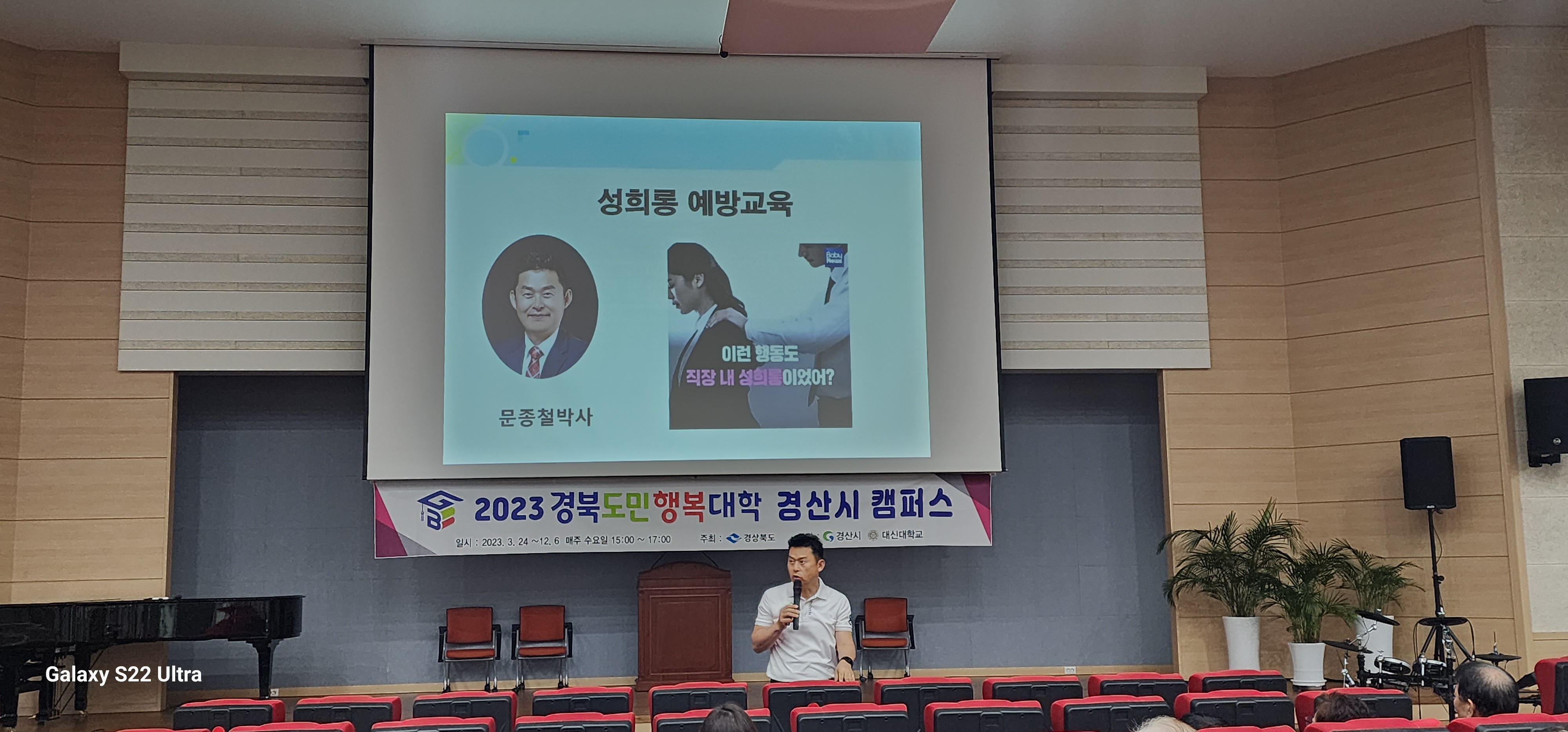 2023 경북도민행복대학 경산시캠퍼스에서 교육생을 대상으로 국제생활안전지도사 2급 자격증반 수업을 진행하였습니다.