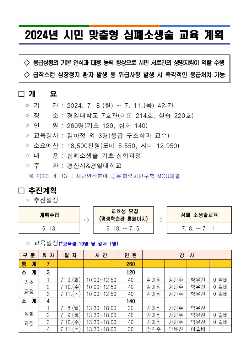 | 2024년 시민 맞춤형 심폐소생술 교육 계획 홍보 | |||||||||