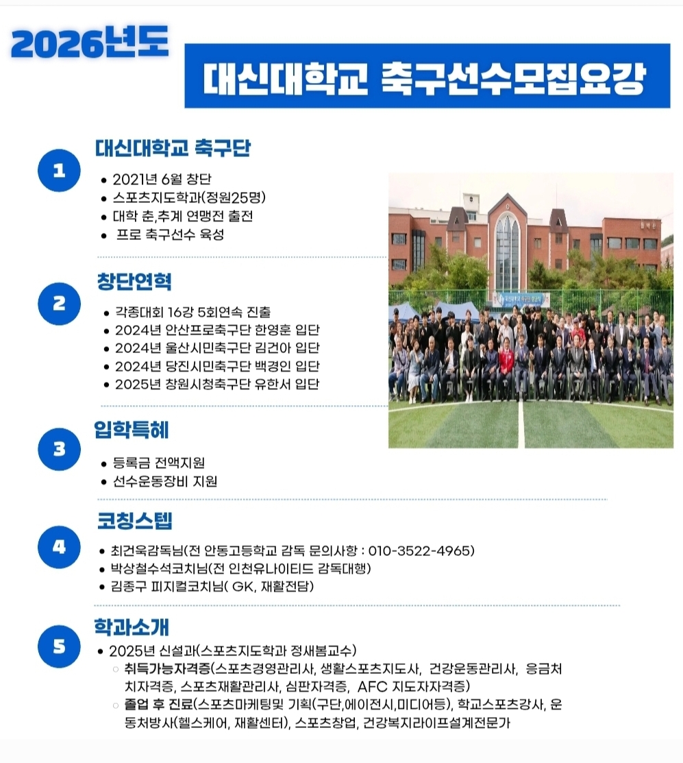 창단 2년차에 4연속 전국대회 16강 이룬 대신대축구부, 도약을 위한 추가 선수 영입에 박차!...