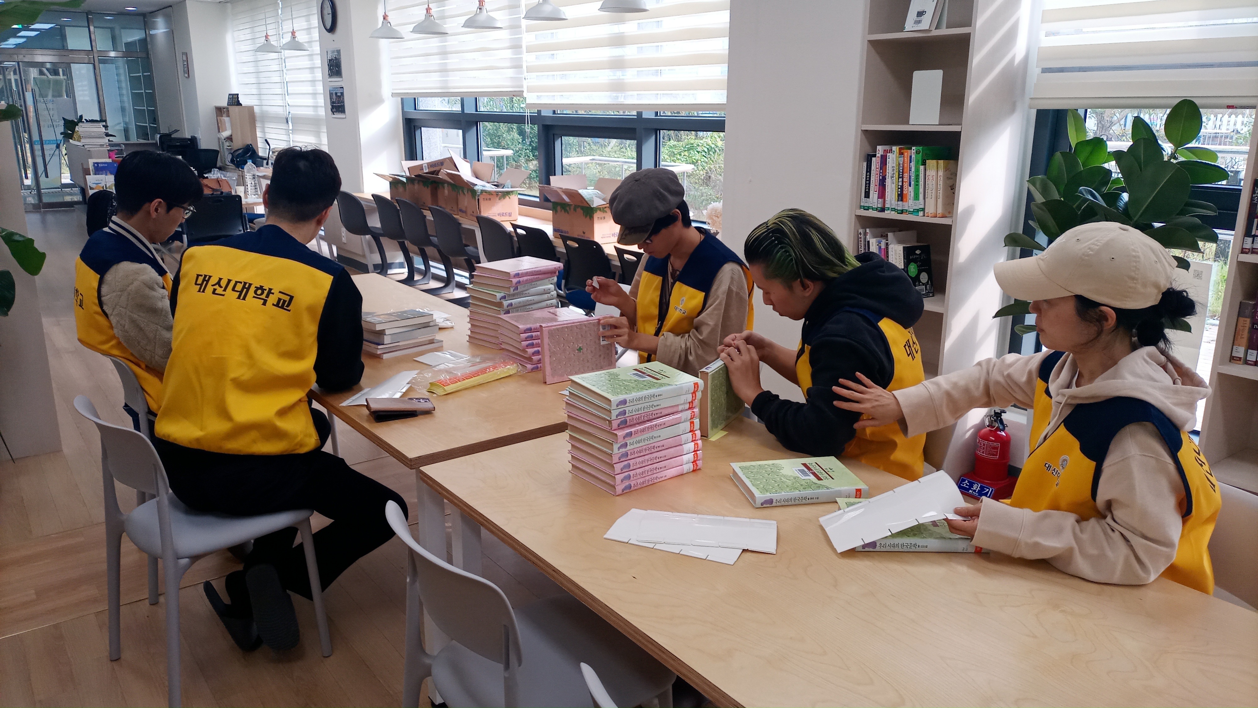 대신대학교 사회봉사센터와 업무협약된 LH서원도서관에 새로 입고된 도서 등록과 정리를 함께 함 |