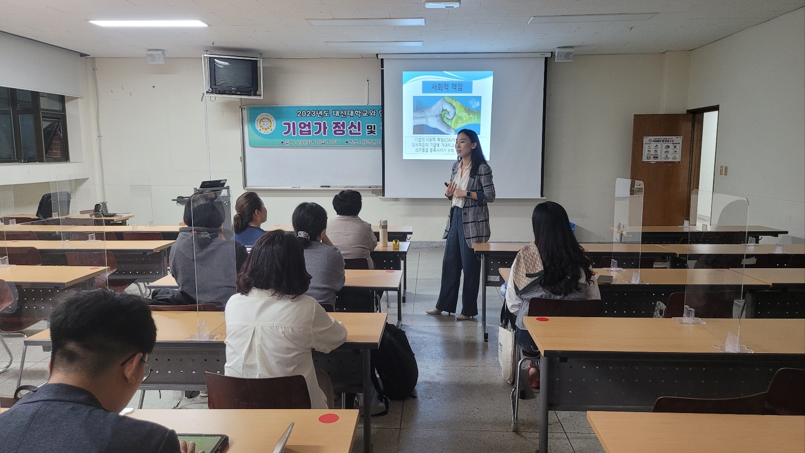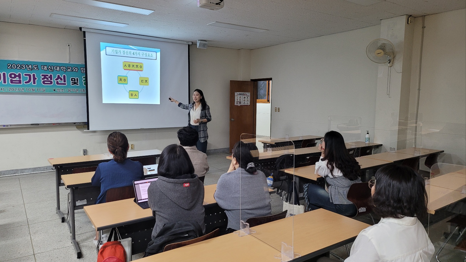 2023년 10월 학생창업특강을 2023.10.10 (화) 대신대학교 음악관 320호에서 창업에 관심이 있는 학생들을 대상으로 "기업가 정신 및 창업기회발견" 이란 주제로 창업에 관한 특강 강의를 진행 하였습니다.