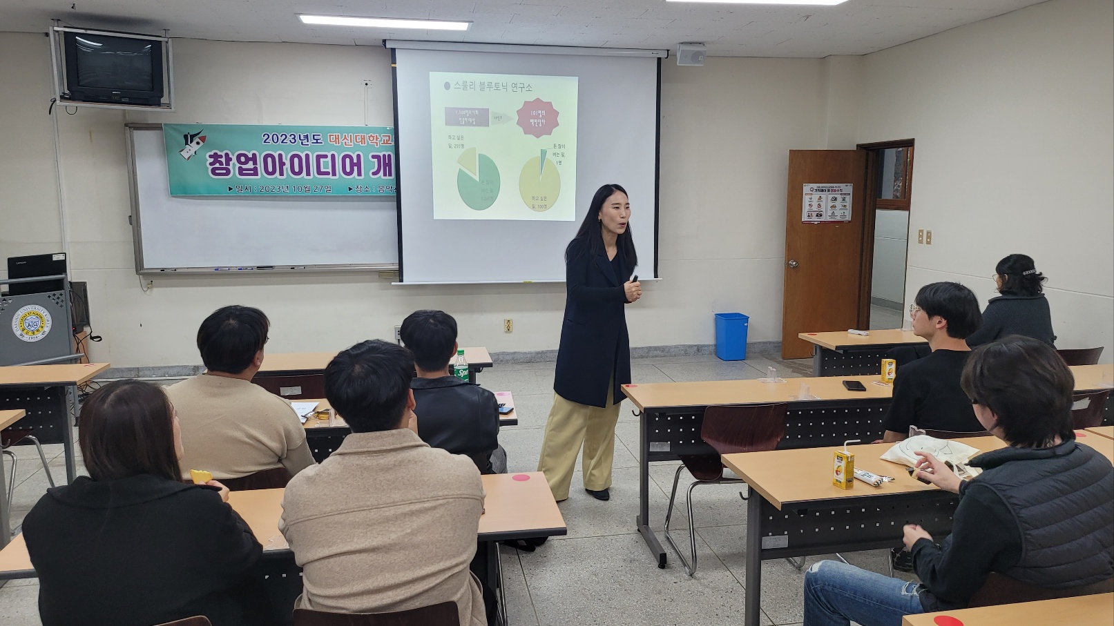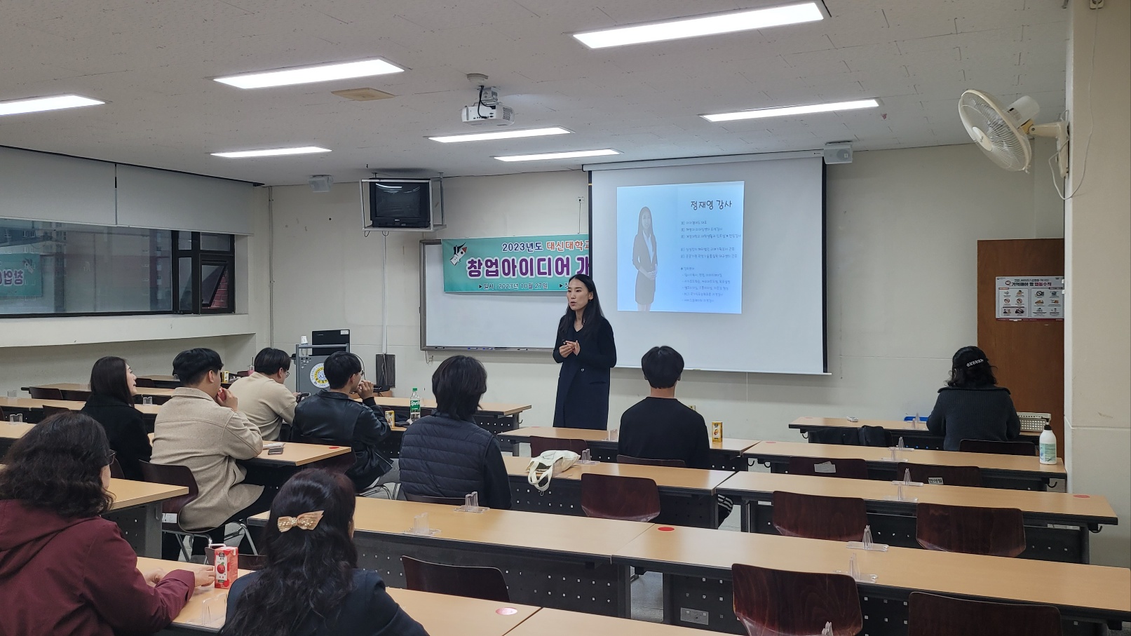 2023년 10월 학생창업특강Ⅱ를 2023.10.27 (금) 대신대학교 음악관 320호에서 창업에 관심이 있는 학생들을 대상으로 "창업아이디어 개발 및 비즈니스 모델" 이란 주제로 창업에 관한 특강 강의를 진행 하였습니다.