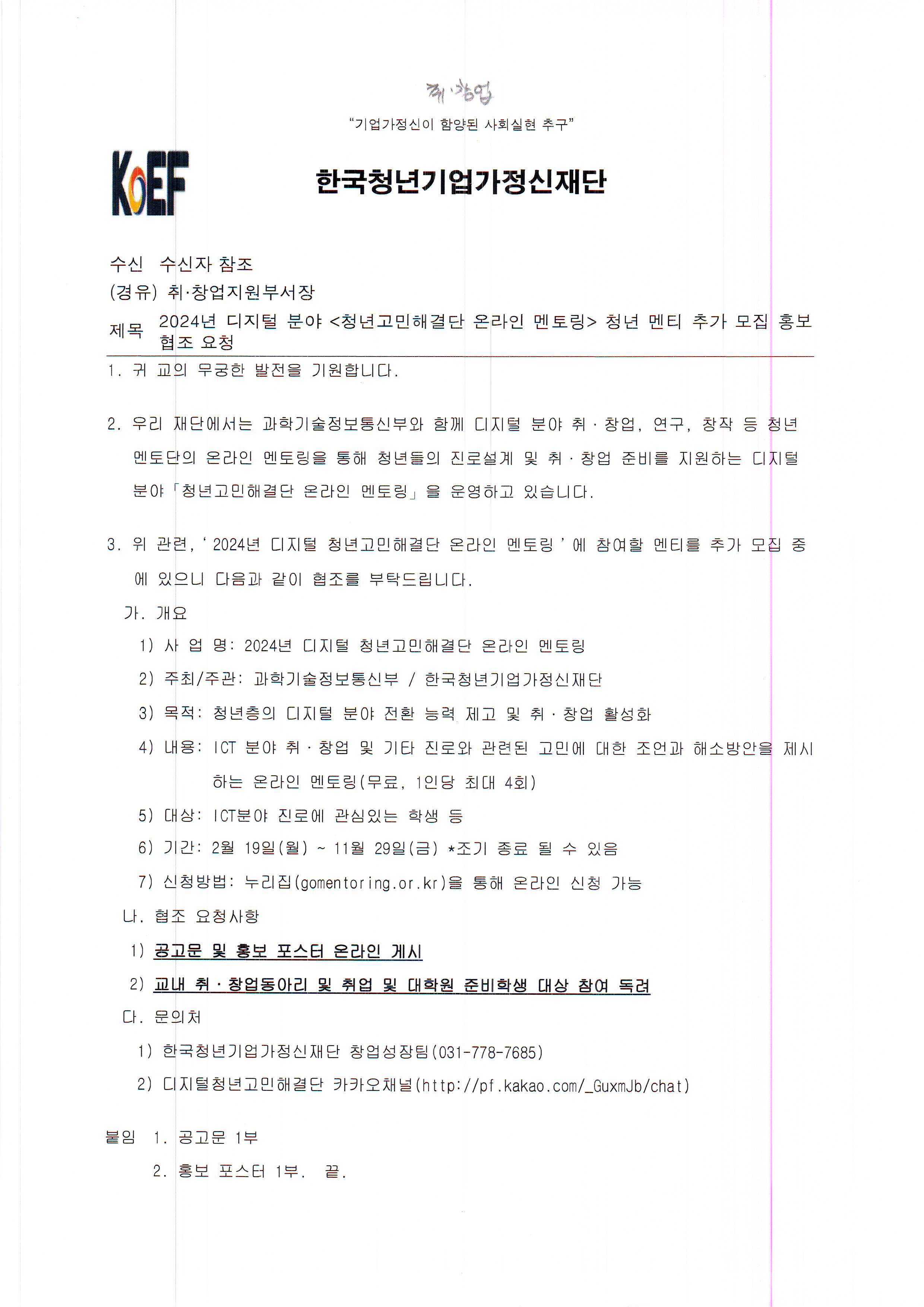 | 2024년 디지털 분야 <청년 고민 해결단 온라인 멘토링> 청년 멘티 추가 모집 | |||||||||