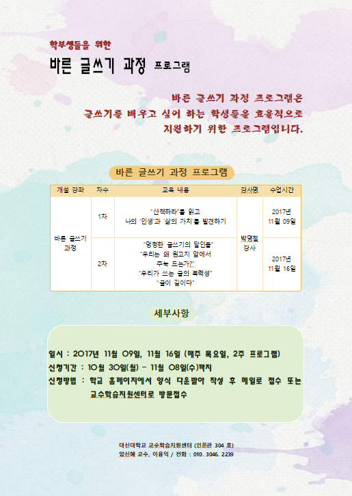 | "바른 글쓰기" 과정 프로그램 안내 | |||||||||