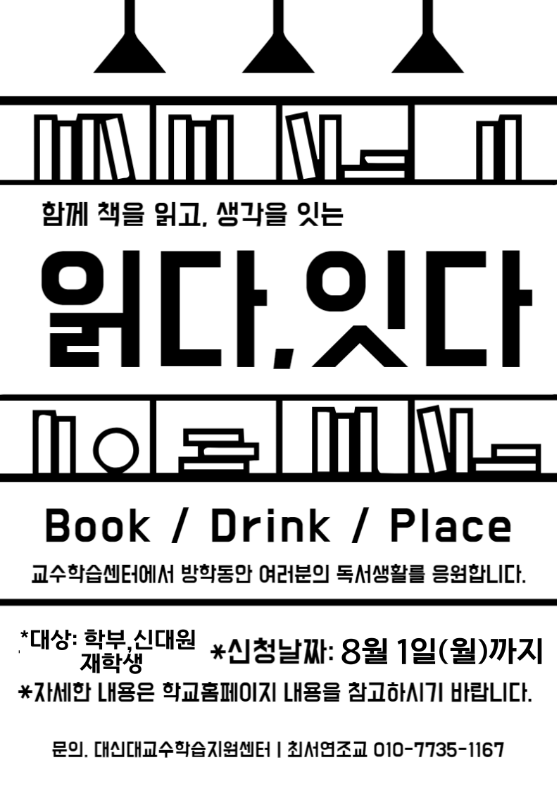 대신대학교 교수학습지원센터는 수업방법의 개선과 학생 성장 역량 강화에 도움을 드리고자 합니다. 수업방법을 개선하기 위한 워크숍, 수업컨설팅 및 교수연구회 프로그램이 있으며 학생 성장 역량 강화를 위한 워크숍, 학습공동체, 공모전 프로그램을 운영하고 있습니다. 가르침과 배움의 활동을 통한 교수·학습자의 역량 강화를 지원하고 있으니 많은 관심부탁드립니다.