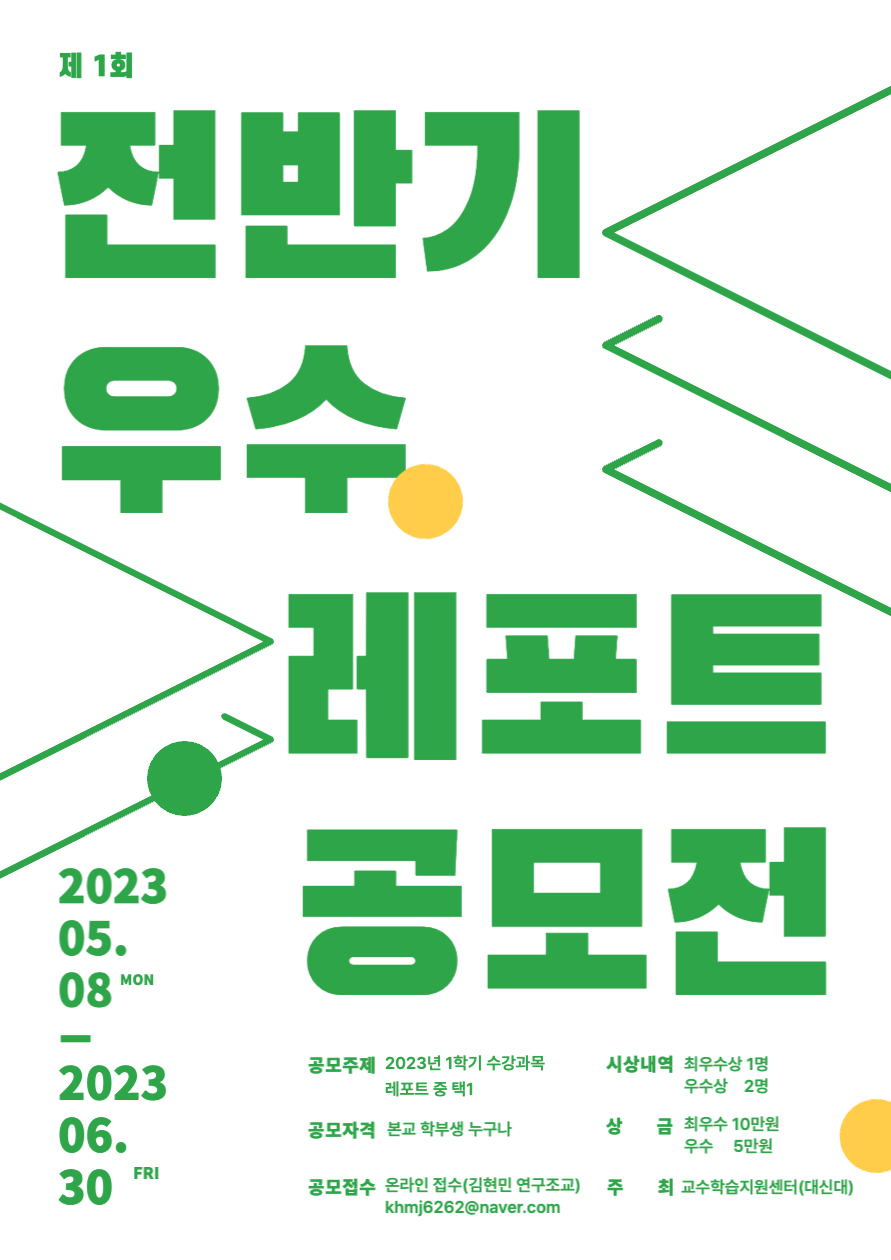 | 재 1회 전반기 우수 레포트 공모전 안내(제출기한 6. 30까지) | |||||||||