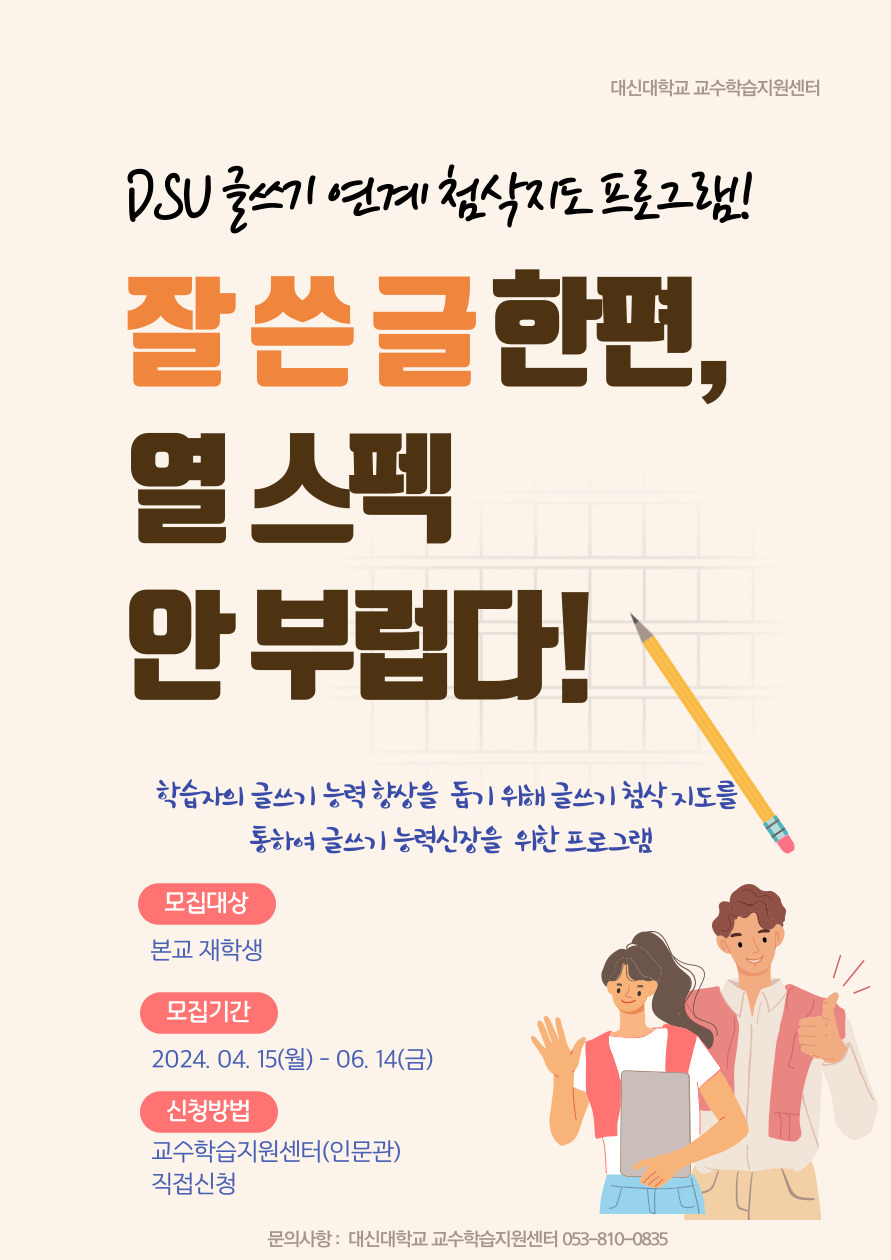 | 2024-1학기 글쓰기 연계 첨삭 프로그램 안내 | |||||||||