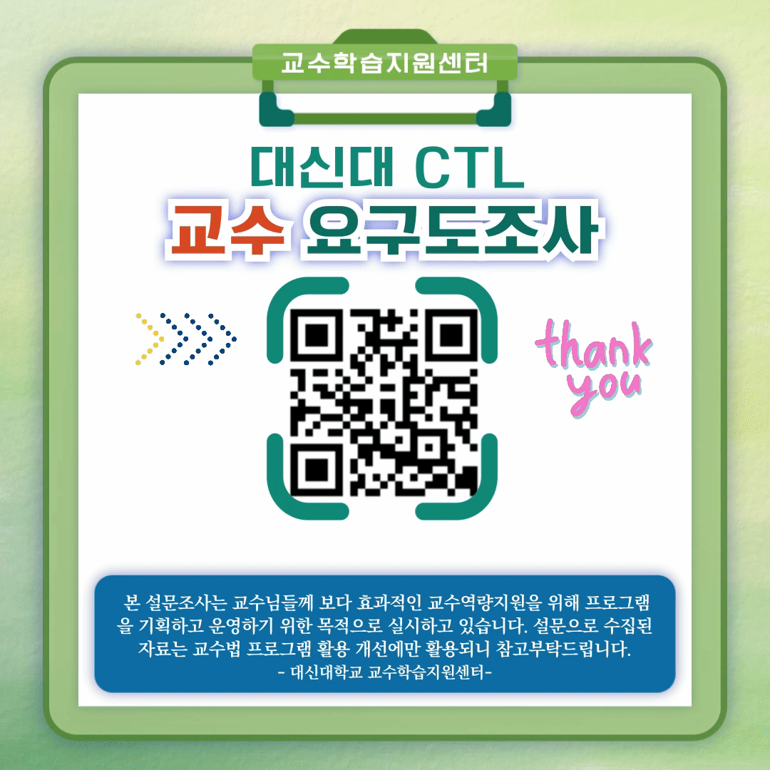 | 대신대 CTL 교수 및 학생 요구도 조사 참여 안내 (설문조사) | |||||||||