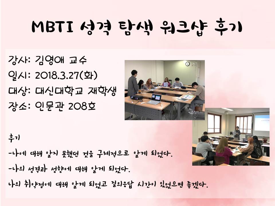 (상담,취업지원센터) MBTI 성격 탐색 워크샵 후기