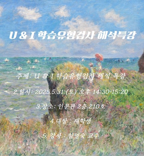 U & I 학습유형검사 해석 특강을 실시합니다.