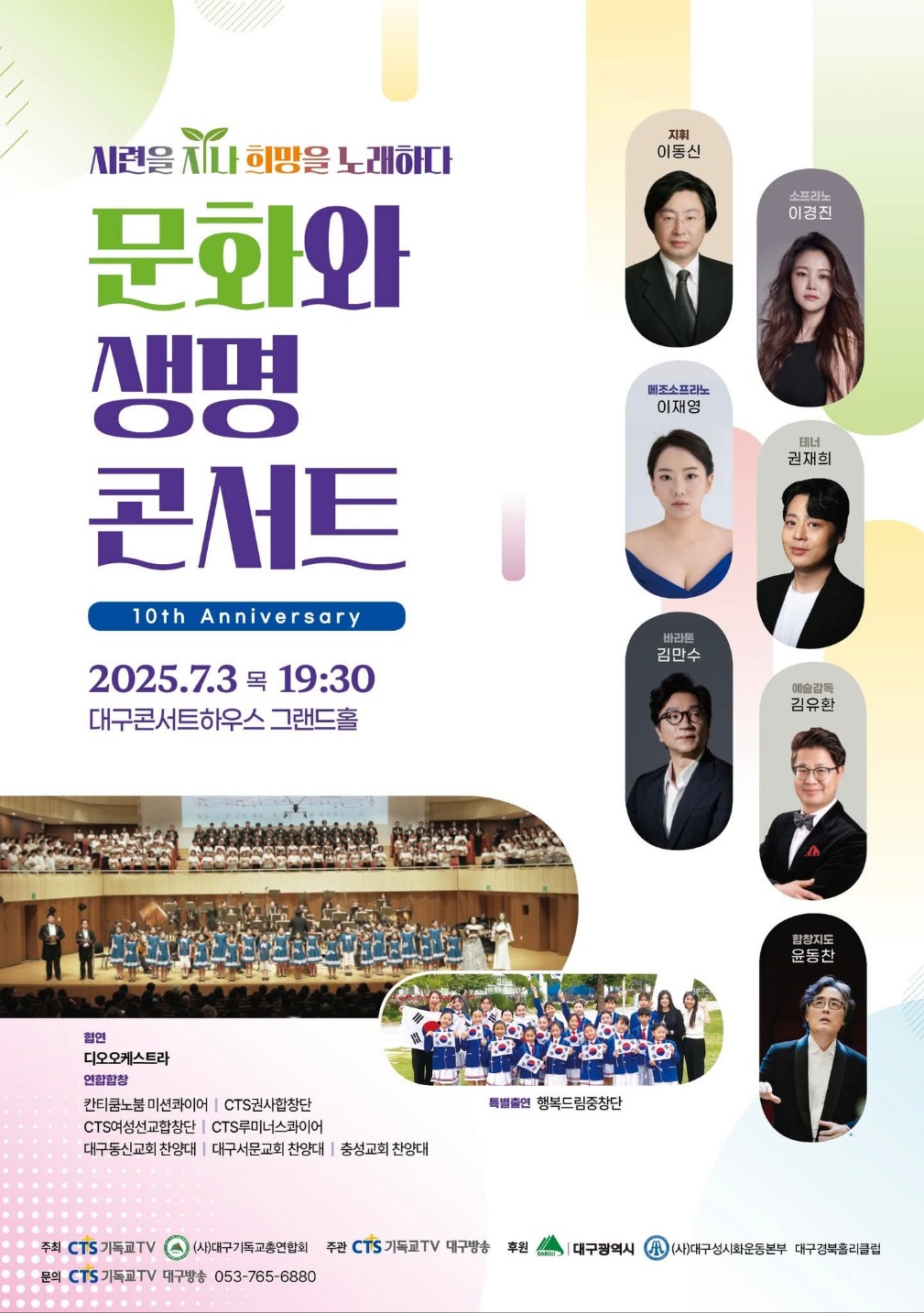 7월 3일(목) 19:30 대구콘서트하우스에서 열리는 『문화와 생명 콘서트』(CTS 주최) 공연 티켓을 지원합니다. 참가를 희망하는 학생은 **6월 23일(월)**까지 신청해 주세요. ※ 신청 인원이 5명 이상일 경우 단체 관람이 진행됩니다.