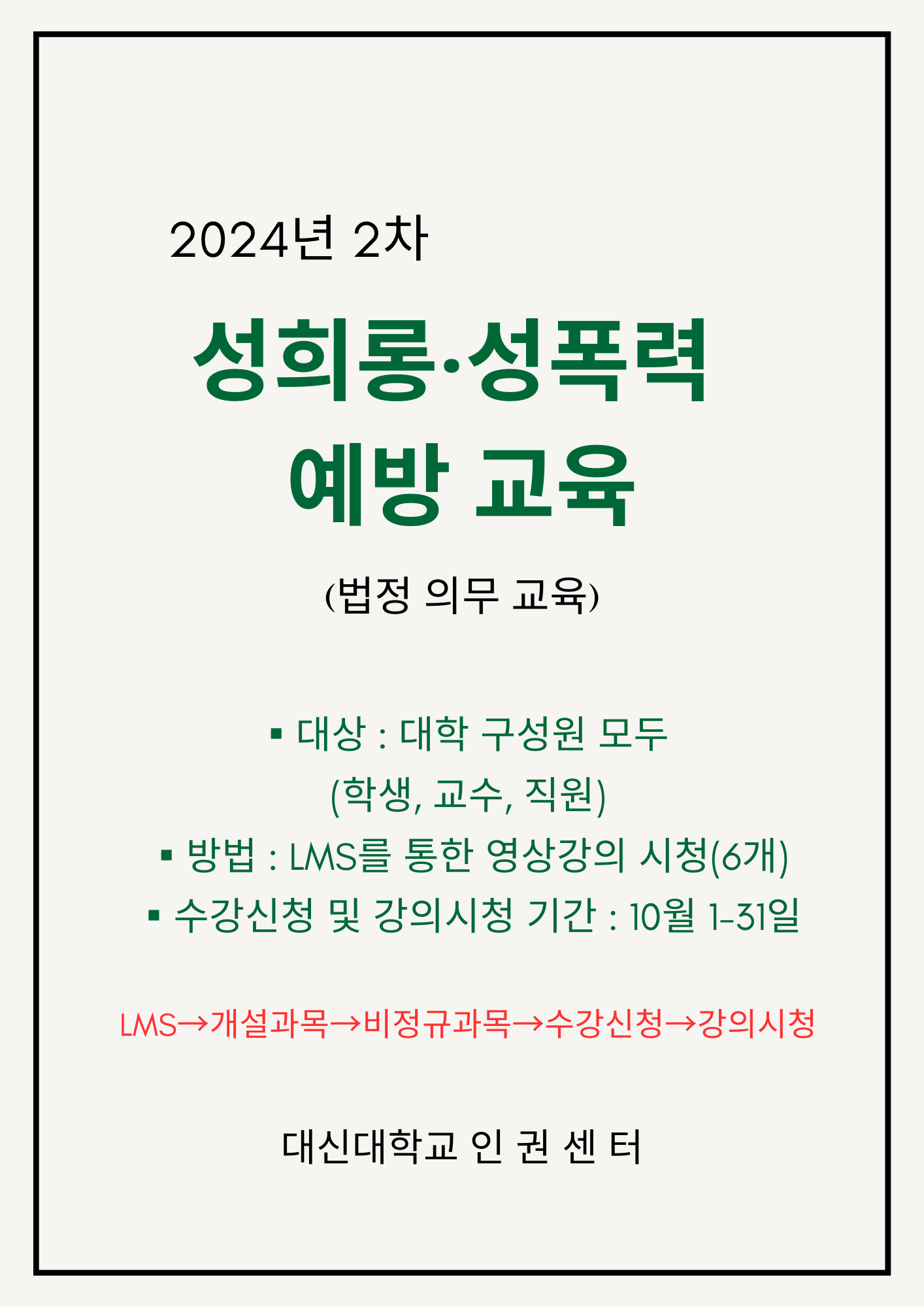| 2024년 성희롱,성폭력 예방교육 안내 | |||||||||