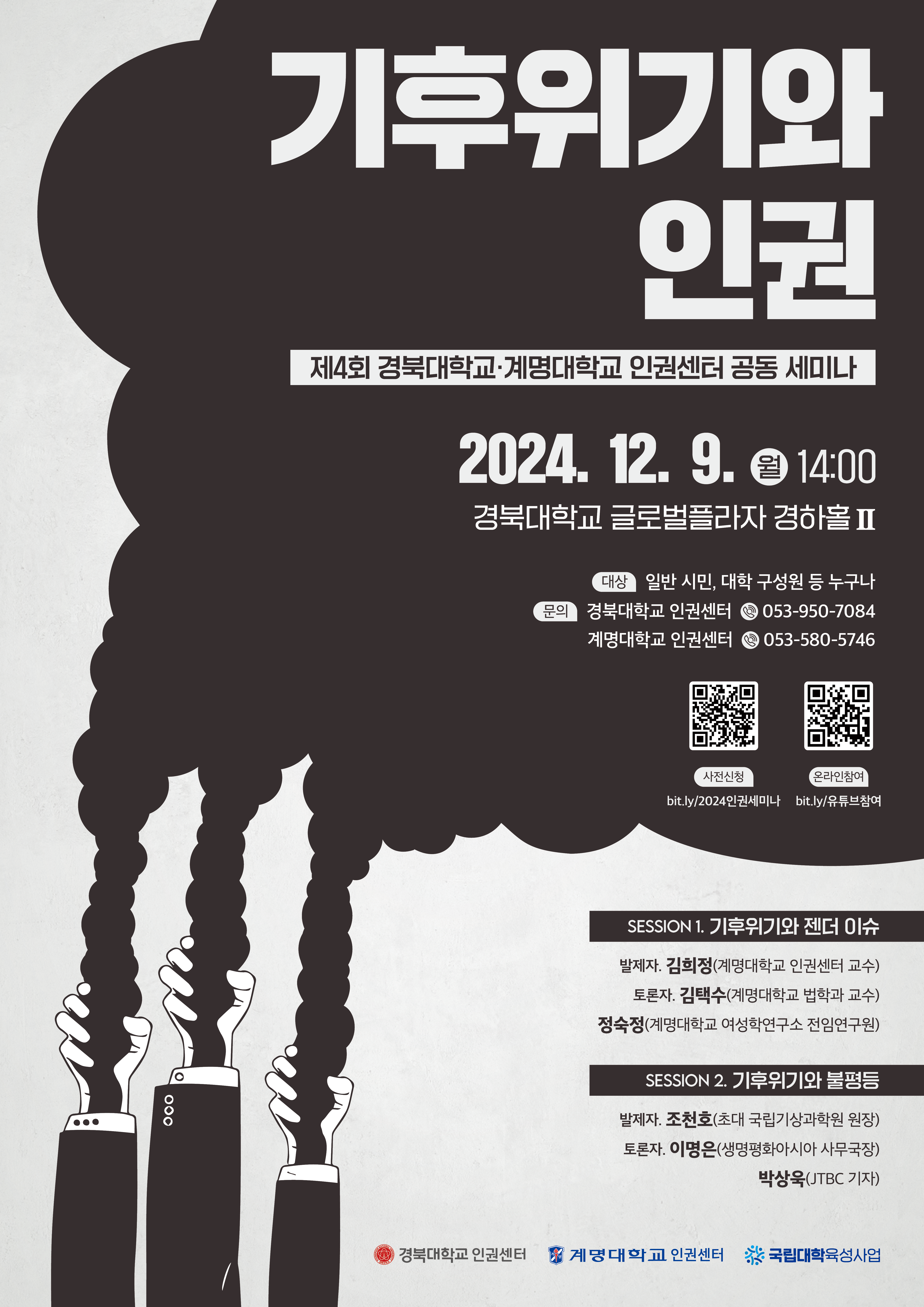 | 경북대학교․계명대학교 인권센터 공동 세미나 안내 "기후위기와 인권" | |||||||||
