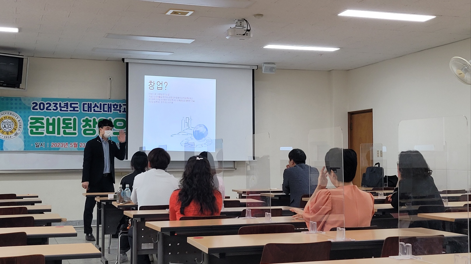 2023년 5월 학생창업특강을 2023.05.23 (화) 대신대학교 음악관 320호 창업에 관심이 있는 학생들을 대상으로 "준비된 창업으로 GoGo Day!" 란 주제로 창업에 관한 특강 강의를 진행 하였습니다.