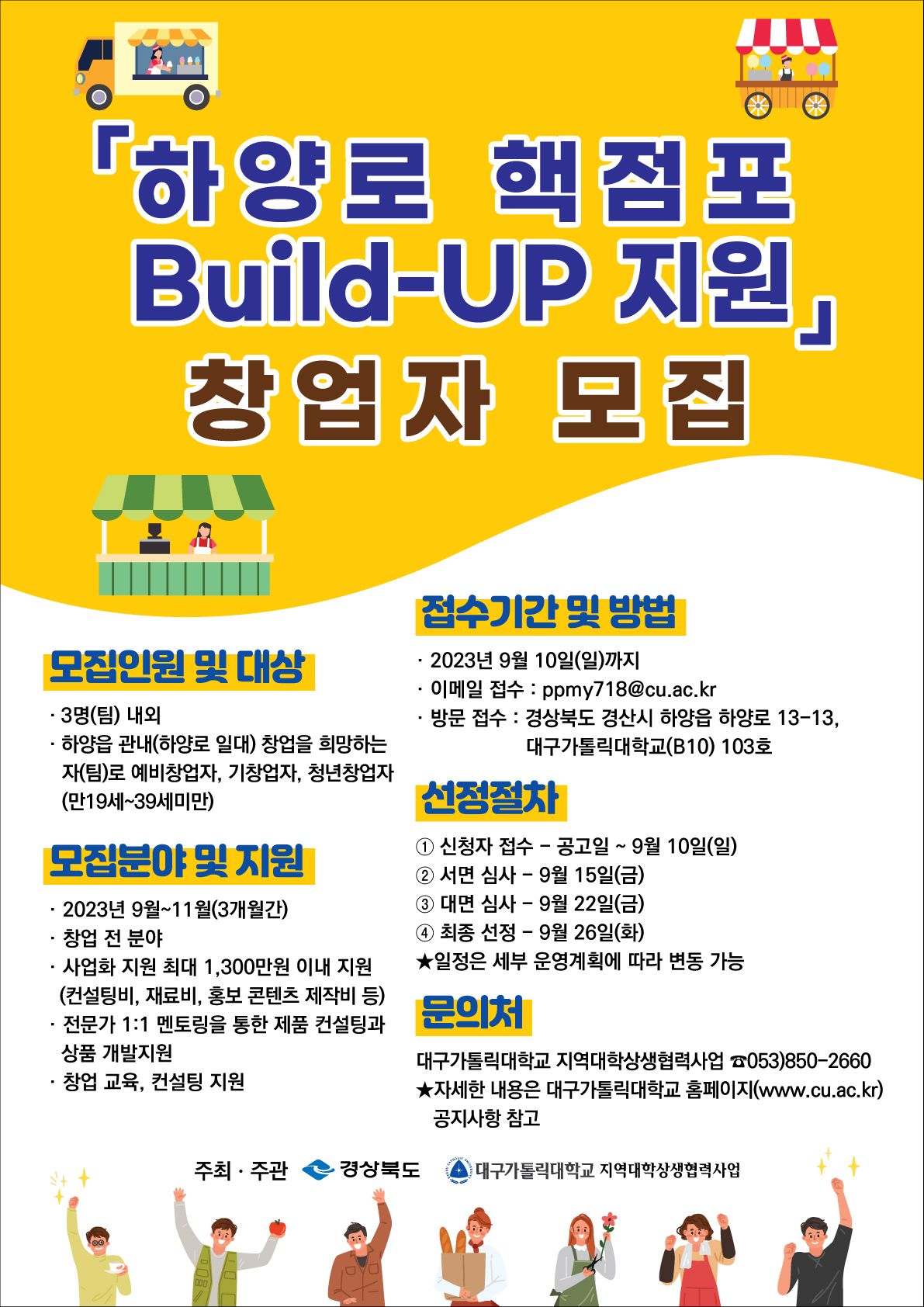 | [창업지원센터] 20230901_하양로 핵점포 Build-UP 지원 창업자 모집 공고 | |||||||||