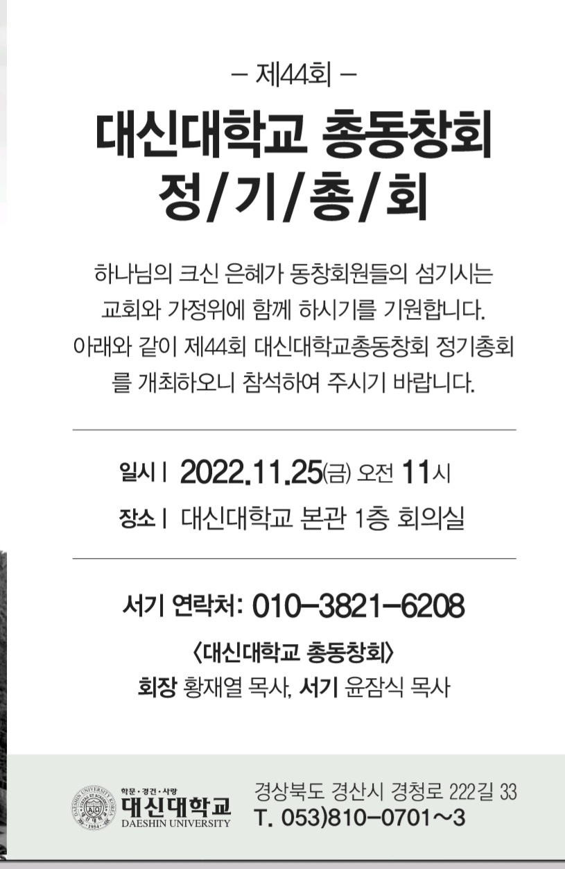 - 제 44 회 - 대신대학교 총동창회 정/기/총/회/