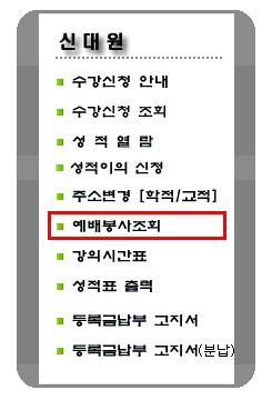 * 대신대학교 메인화면 [학사종합서비스] → 로그인 → [예배봉 사조회]