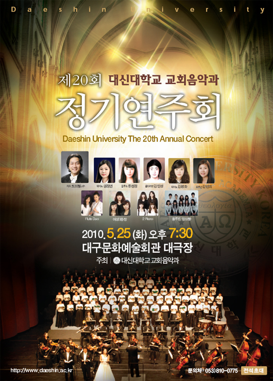 제20회 대신대학교 교회음악과 정기연주회Daeshin University The 20th Annual Concert♣ 5월 25일(화) 오후 7:30 ♣ 대구문화예술회관 대극장 - 전석초대 -