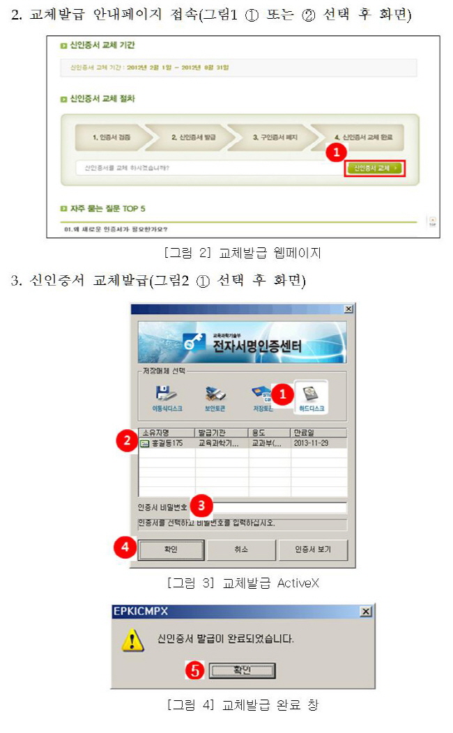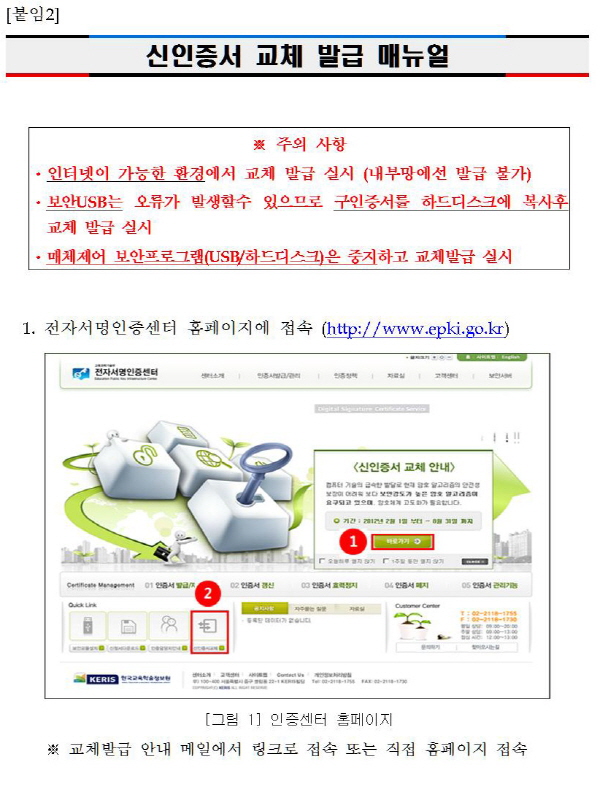 전자서명인증센터 신인증서 교체 발급 안내