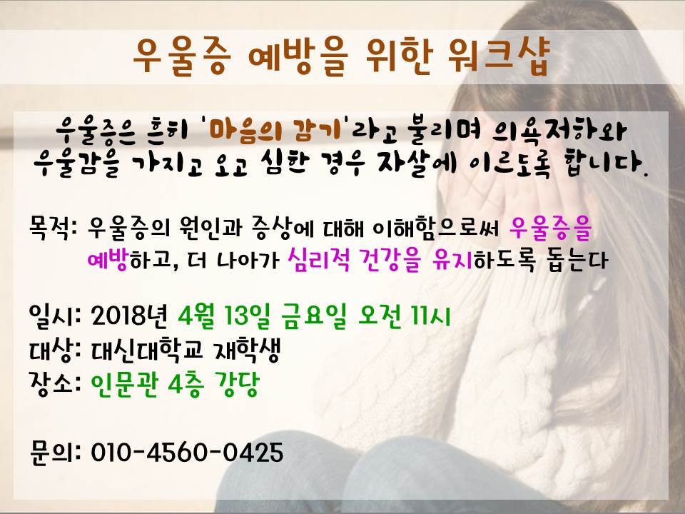 (상담,취업지원센터) 우울증 예방을 위한 워크샵