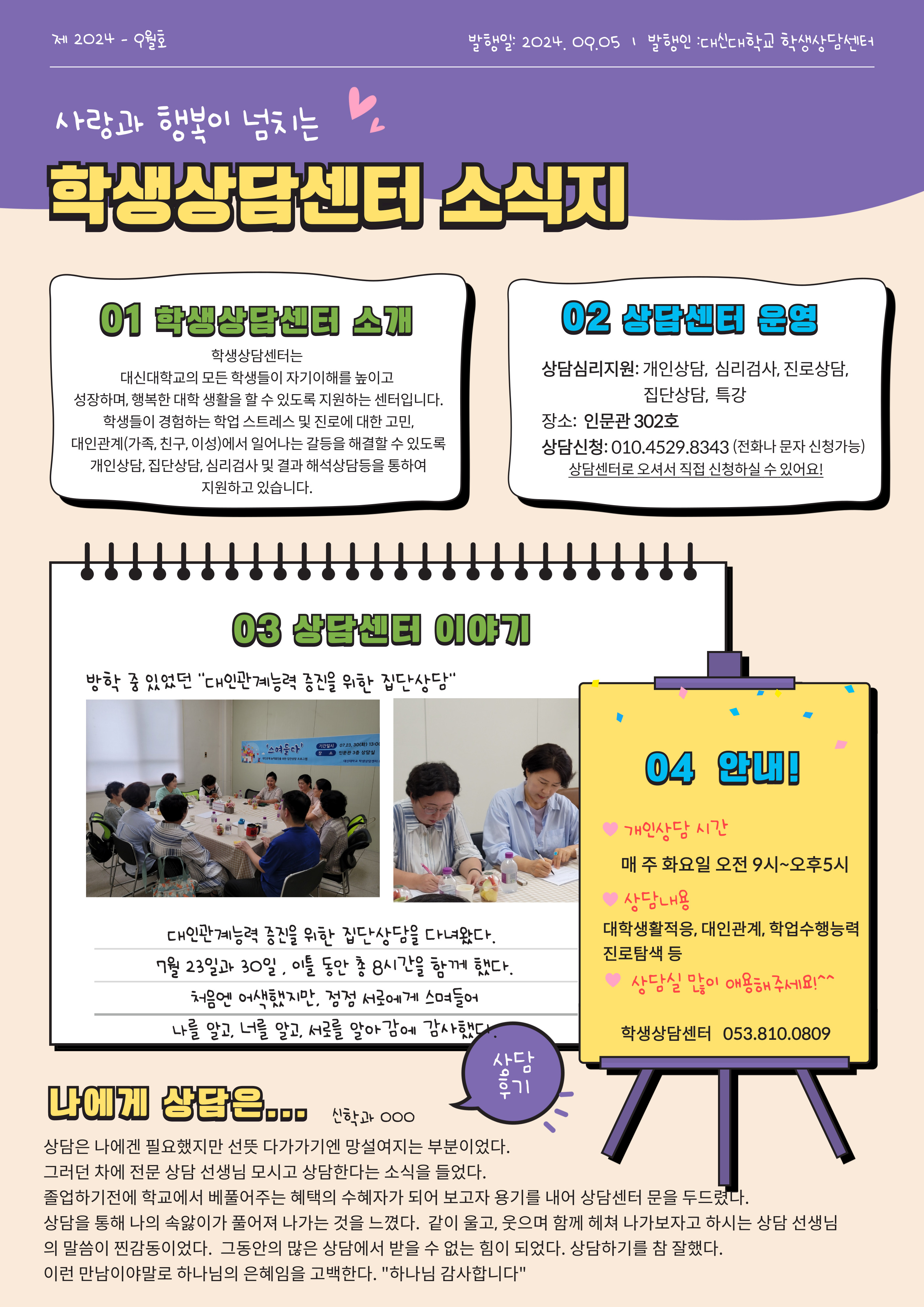 학생상담센터 9월 소식지입니다.