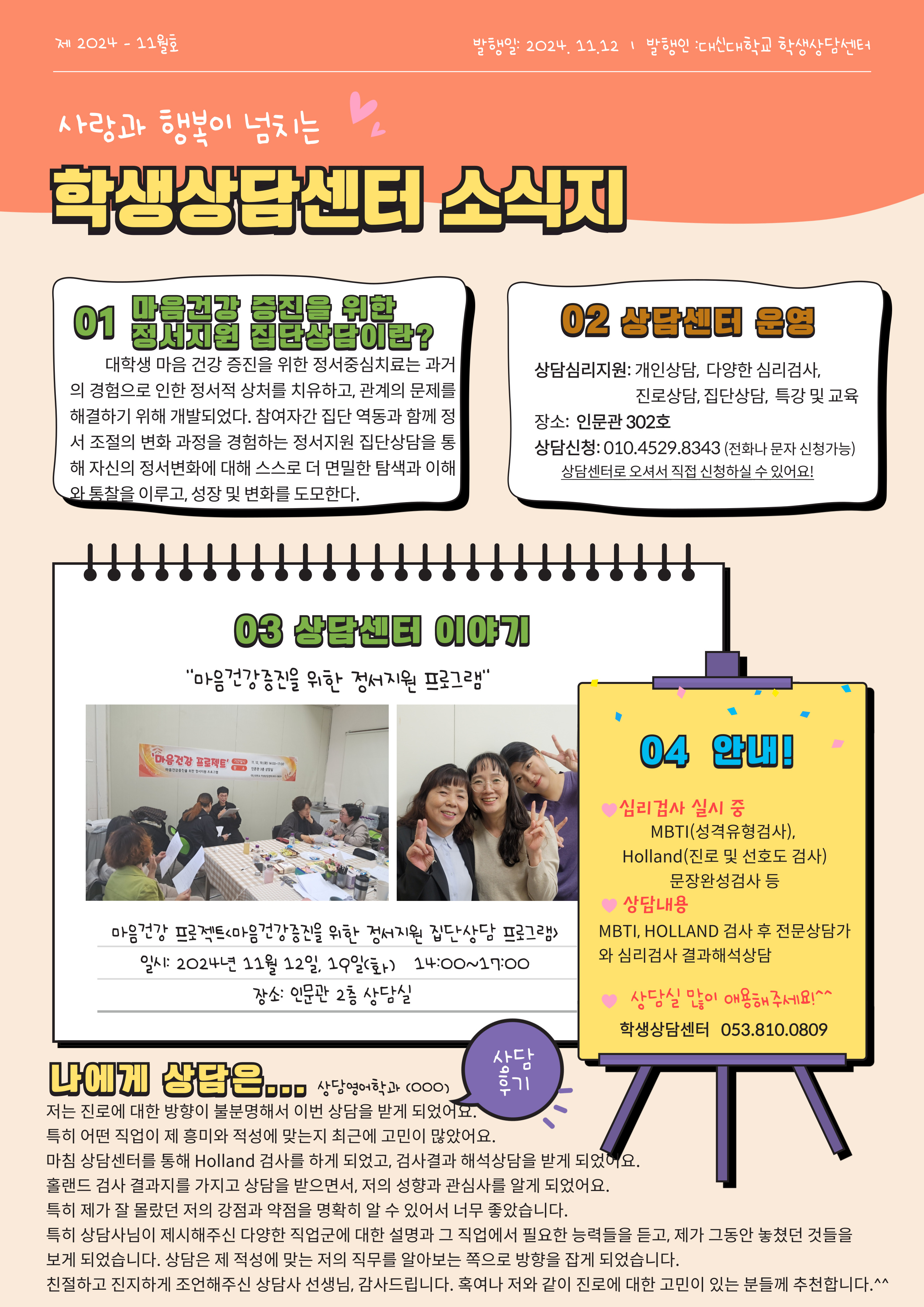 학생상담센터 11월 소식지입니다^^