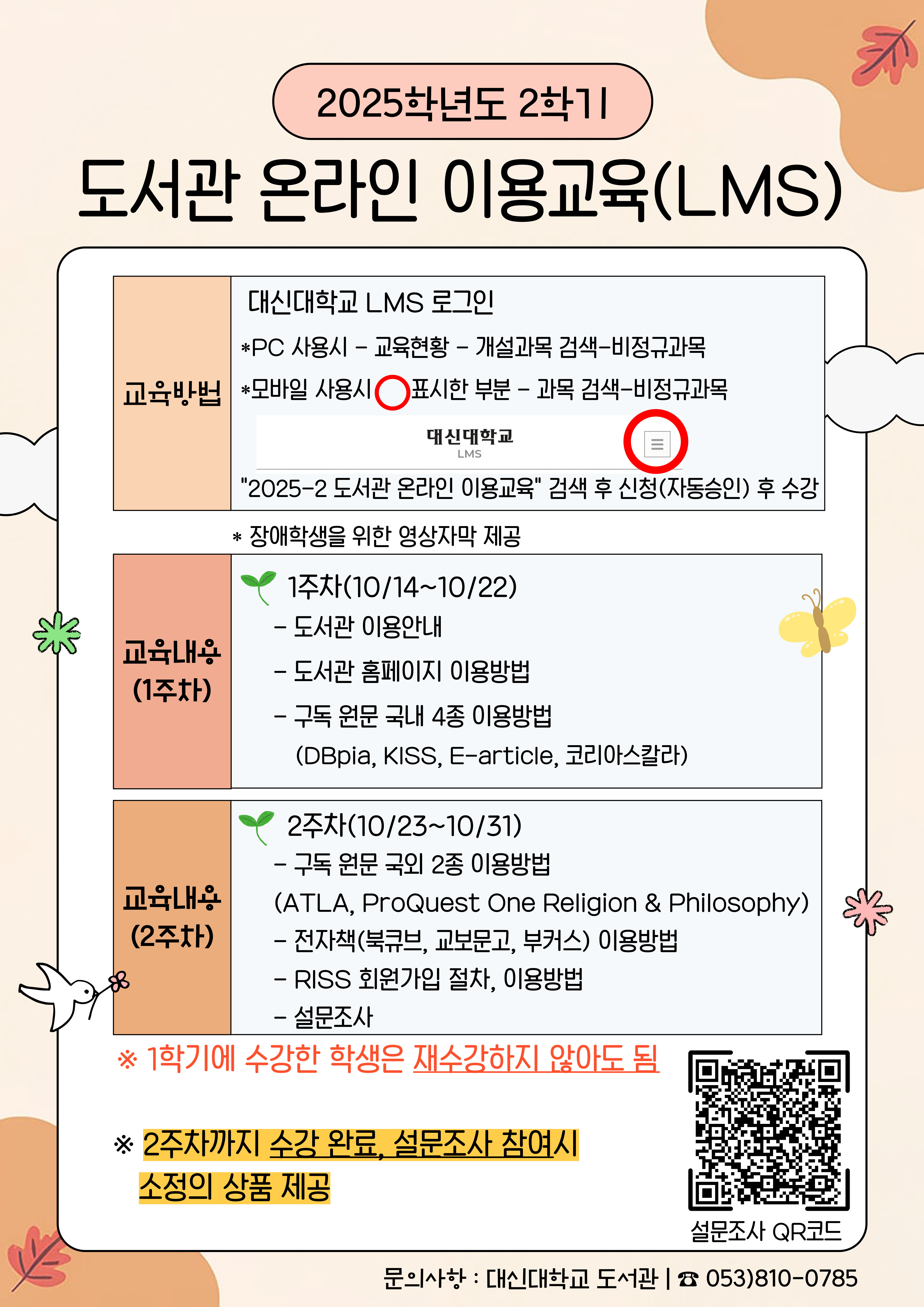 2025학년도 2학기 외국인 유학생 도서관 온라인 이용교육