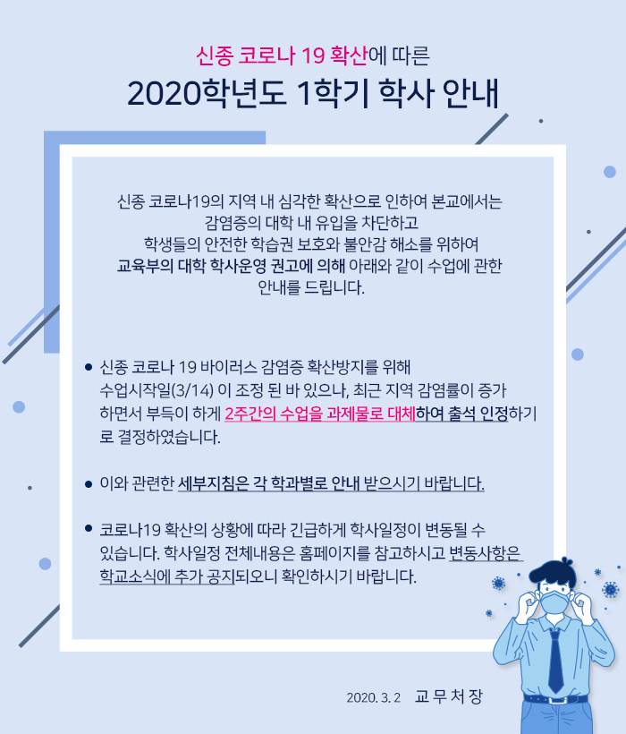 신종 코로나 19확산에 따른 2020학년도 1학기 학사 안내