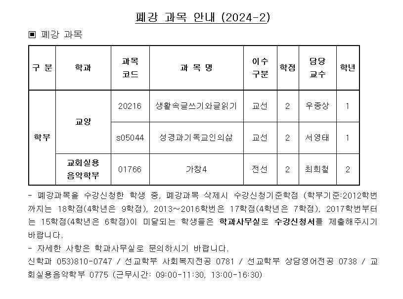 [학부/신대원] 수강포기 신청 안내(2024-2)