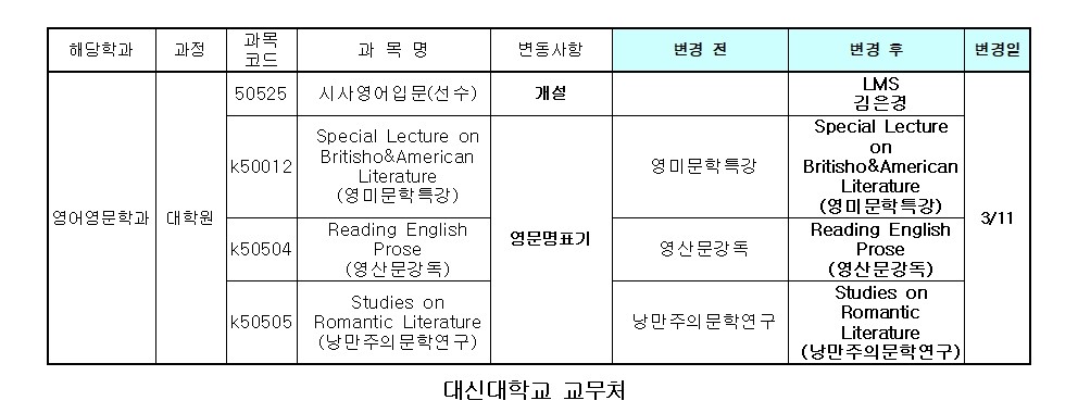 2025학년도 1학기 수강안내서 변경사항 안내(3/7)