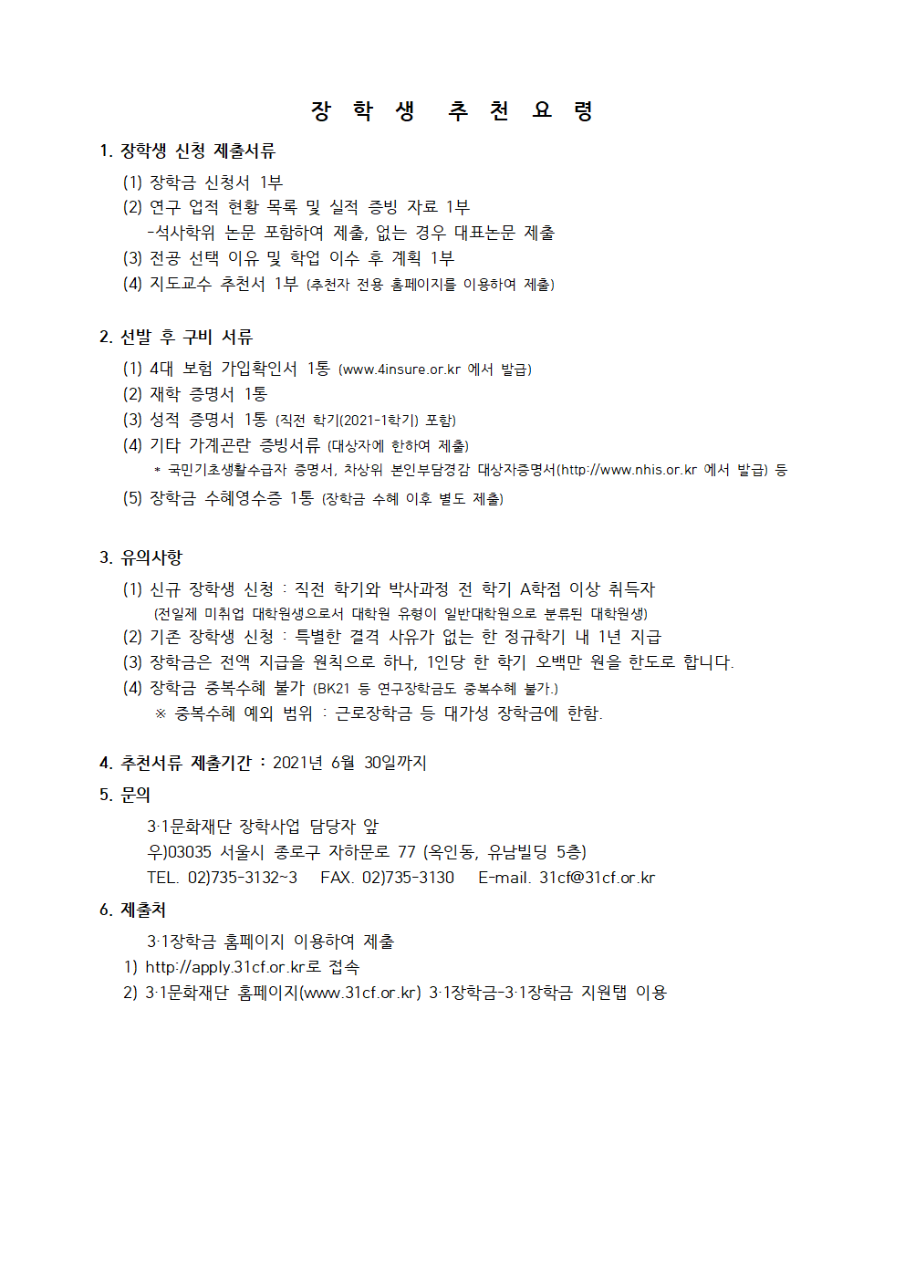 (재)3.1문화재단 장학생(박사과정) 신청 안내
