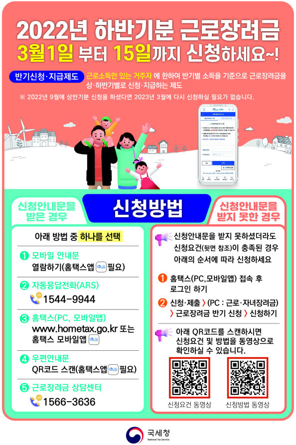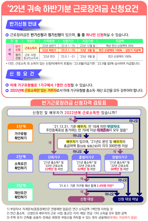 3월(3.1.~3.15.)은 '22년 하반기분 근로장려금 신