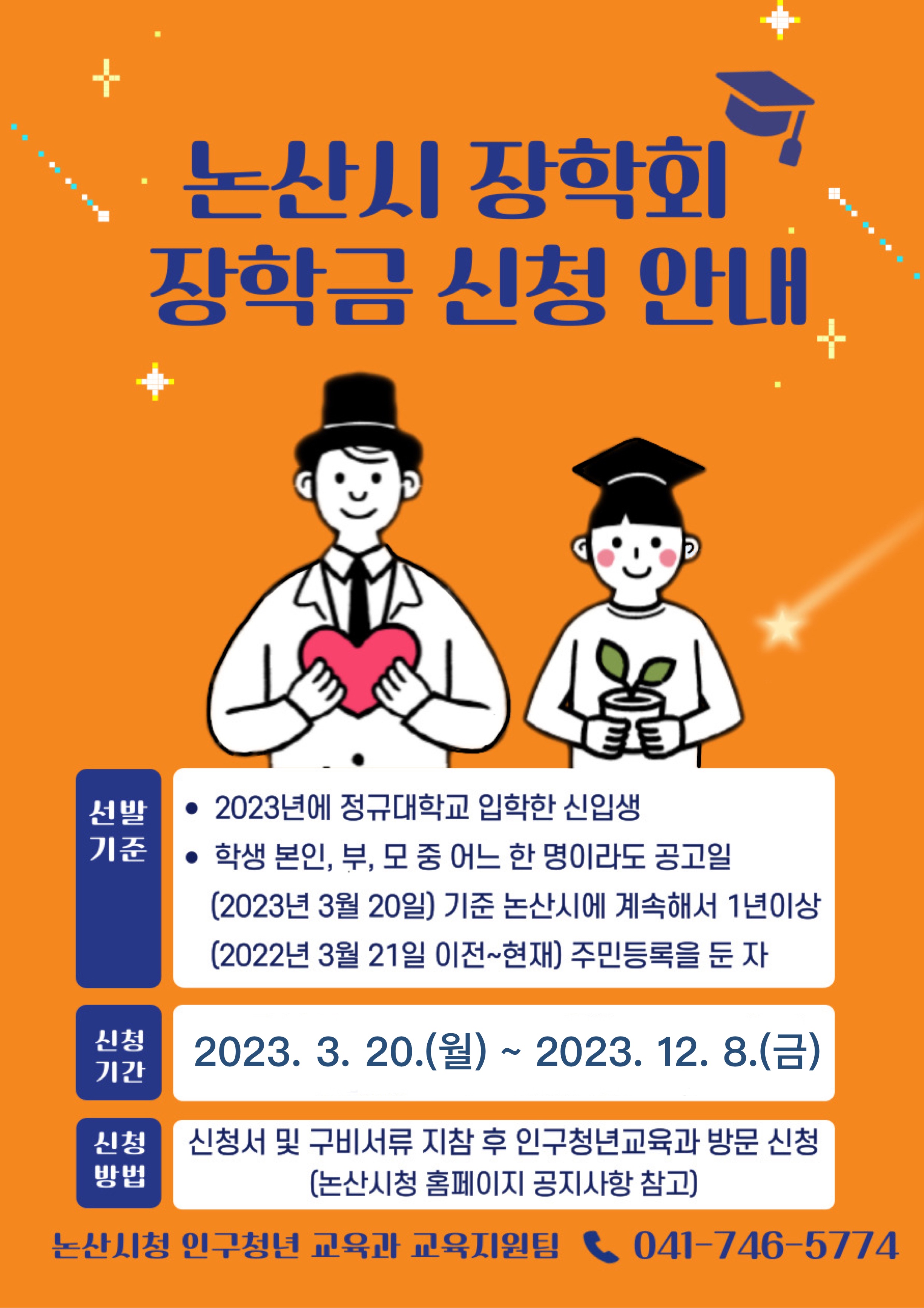 2023년도 (재)논산시장학회 학업장려 장학금 신청 관련하여 아래와 같이 안내드립니다.