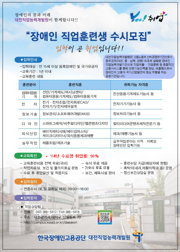 장애인 직업훈련생 모집 안내 - 대전직업능력개발원