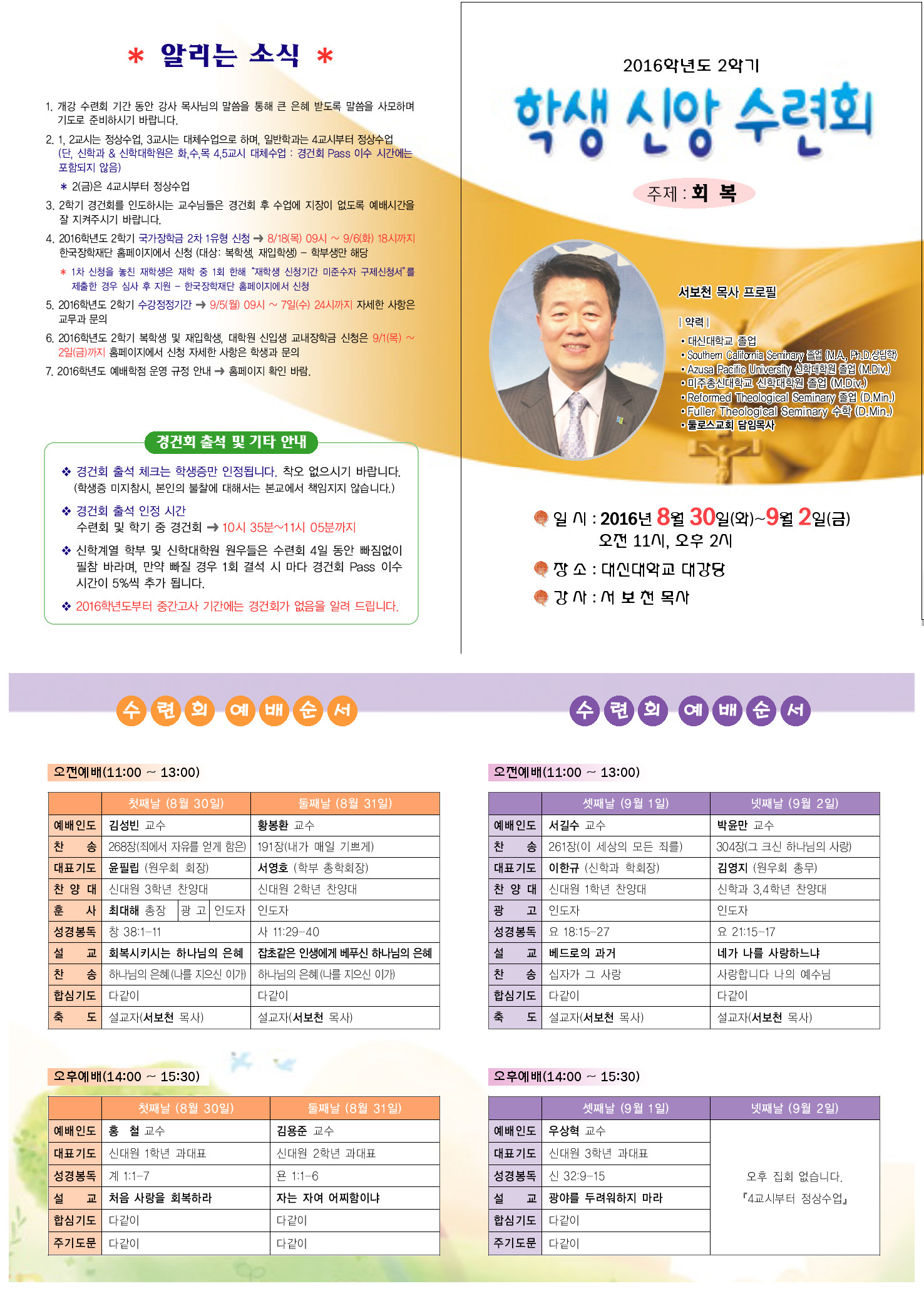 | 2016학년도 2학기 학생신앙수련회 안내 | |||||||||