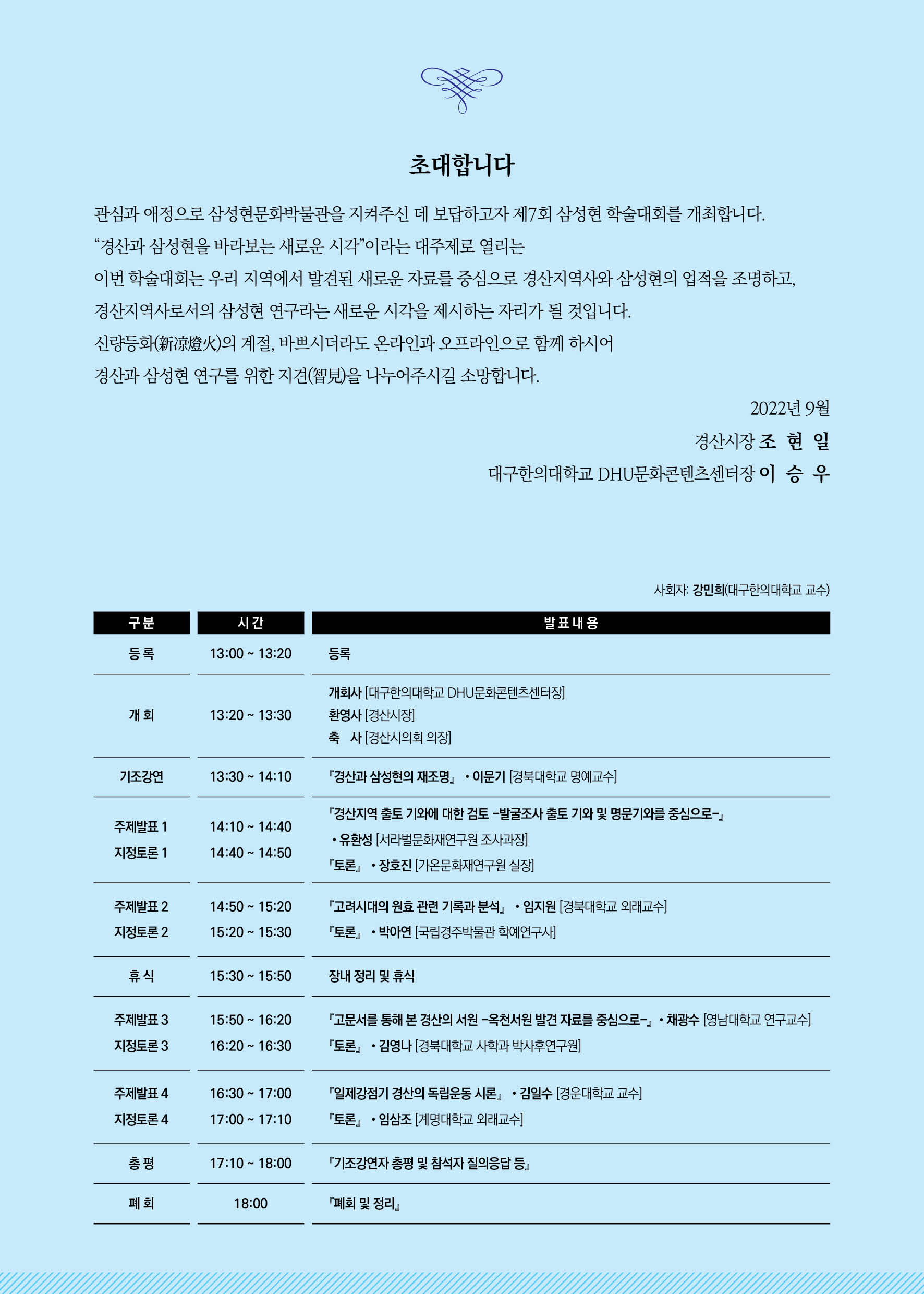 | 경산시 삼성현역사문화관 「제7회 삼성현 학술대회」개최 홍보 | |||||||||