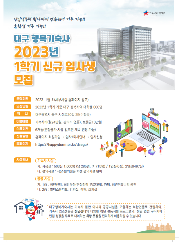 대구행복기숙사(연합) 2023학년도 1학기 개관에 따른 홍보