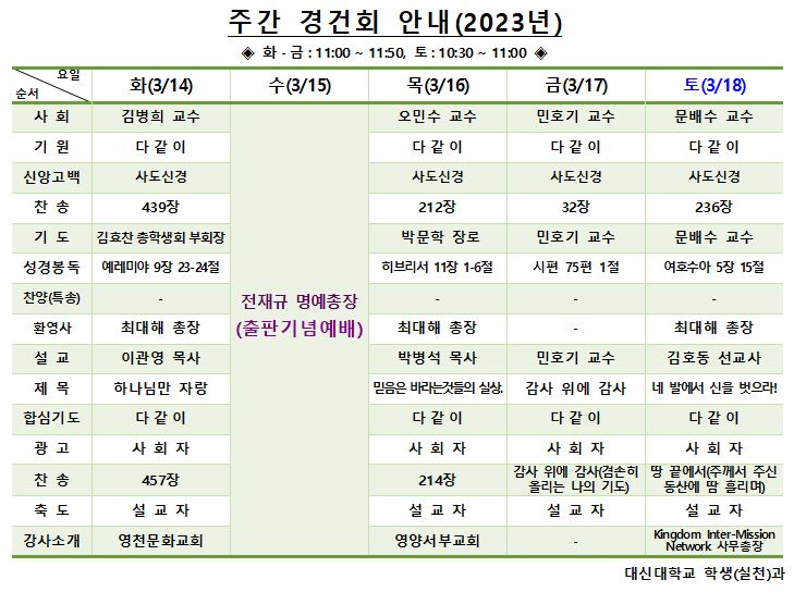 3/14 - 3/18 경건회 안내