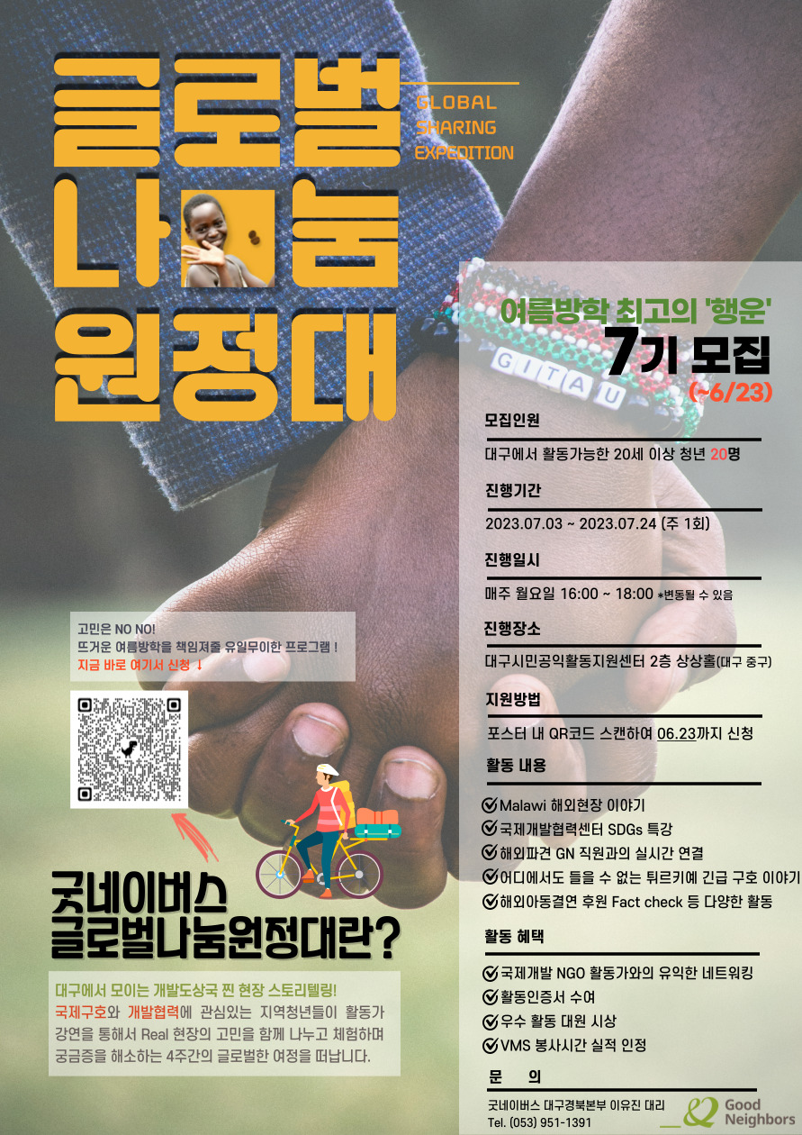 | [굿네이버스 대구경북본부] 2023년 여름방학 최고의 행운, 글로벌나눔원정대 7기 안내 | |||||||||