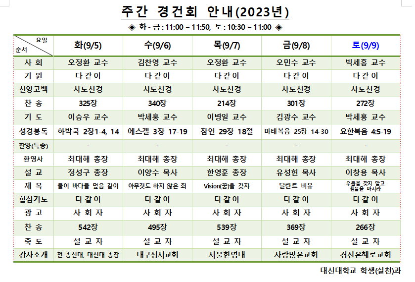 9/5 - 9/9 경건회 안내