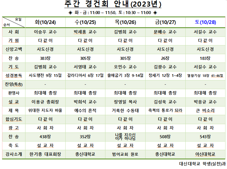 10/24 - 10/28경건회 안내