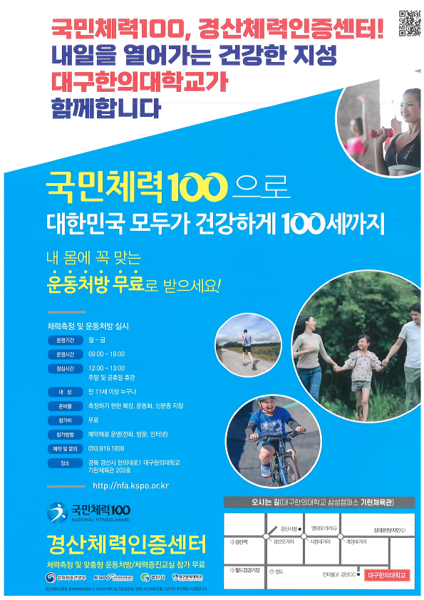 국민체력 100 경산체력인증센터 체력측정 이용 안내