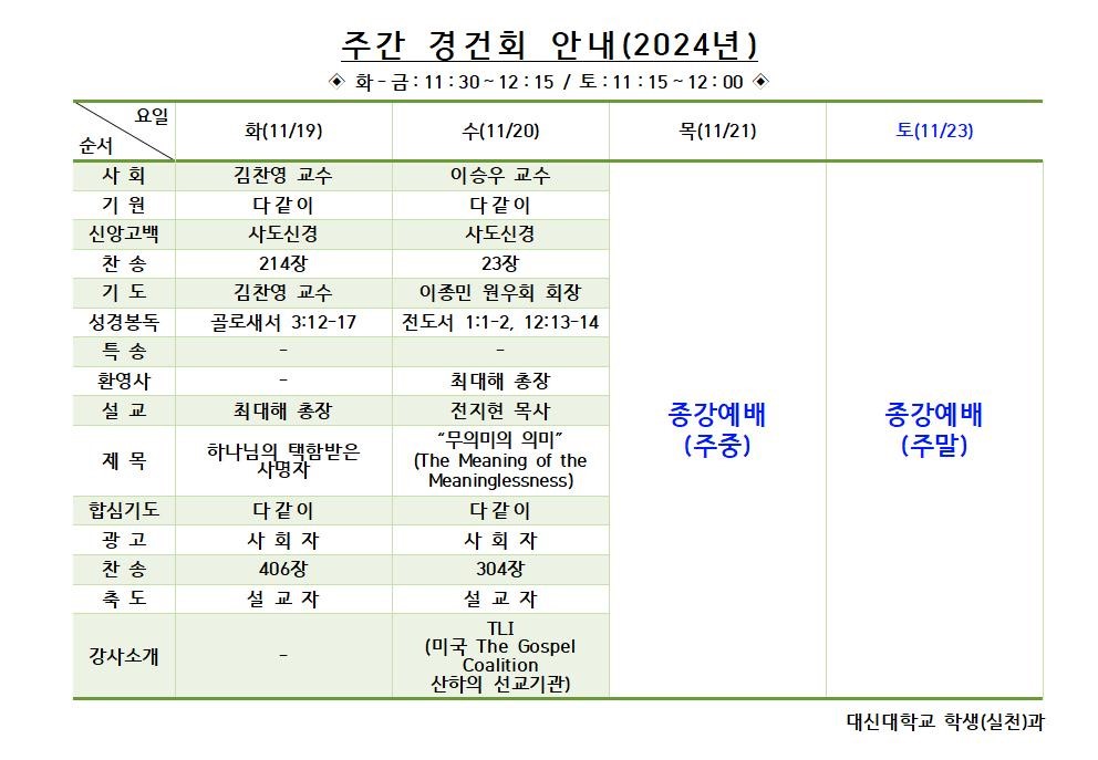 2024학년도 2학기 경건회 미이수자 재교육 일정